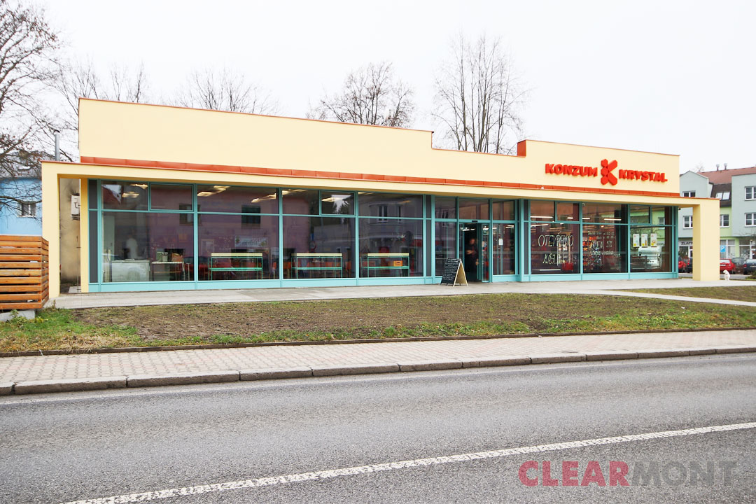 Na jaře roku 2025 nás oslovil zákazník s požadavkem na návrh, výrobu a montáž nových prosklených výkladců pro obchodní objekt v Novém Boru.